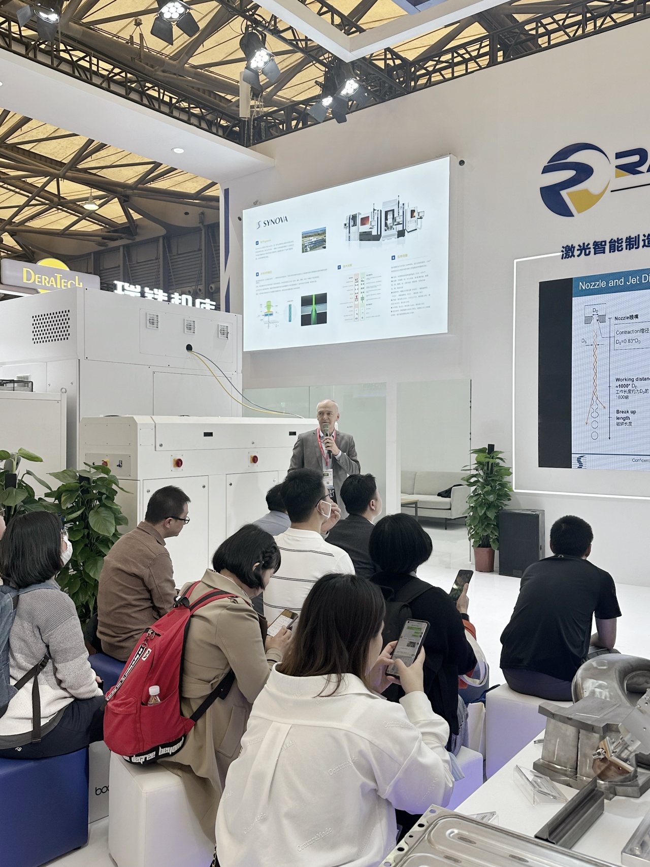 精彩紛呈的新品發布會上,中科煜宸鎖紅波先生介紹了RJ305的外觀性能并現場演示了設備加工過程。中科煜宸董事長邢飛先生、瑞士Synova創始人Bernold Richerzhagen先生先后致辭,將發布會氣氛推向高潮。